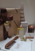 This luxurious set includes a full-sized boxed bottle of our signature hair oil, paired with a beautifully crafted sandalwood detangling comb and a complimentary suede travel pouch.